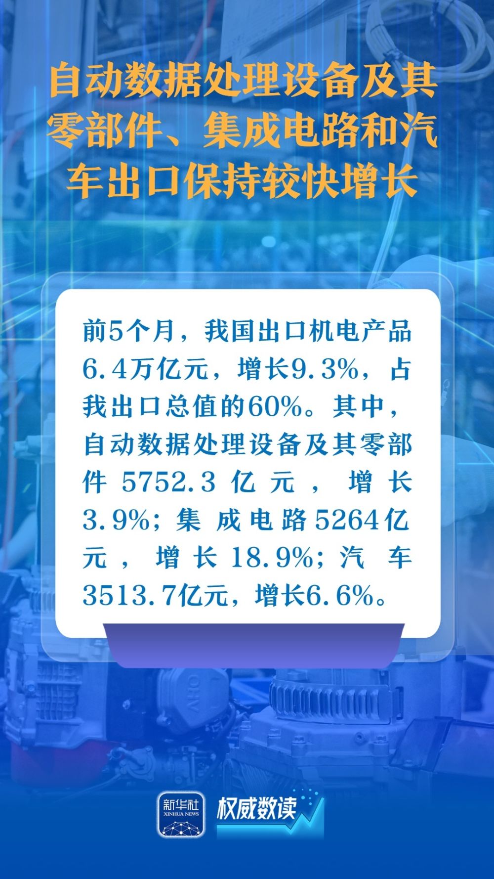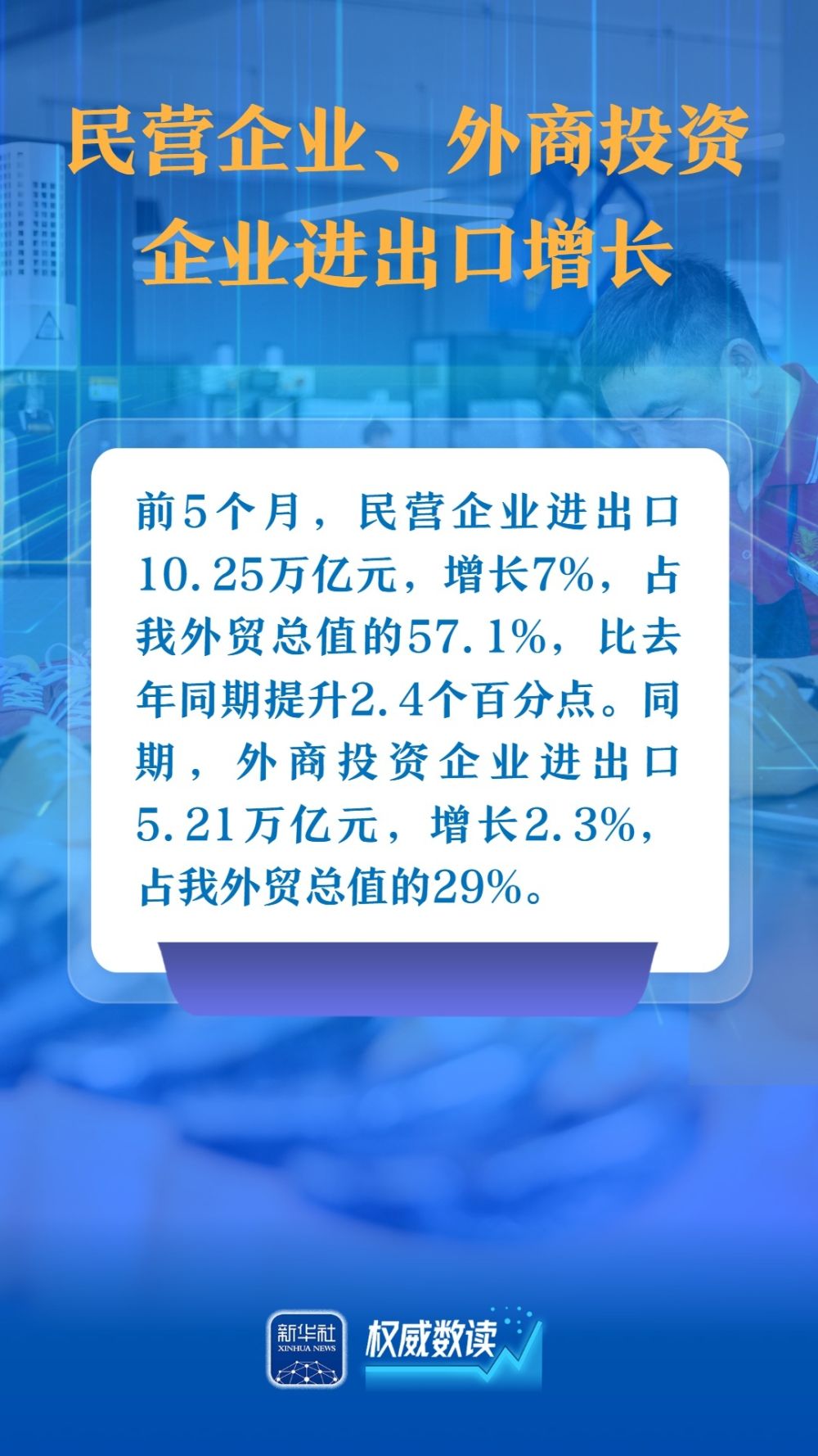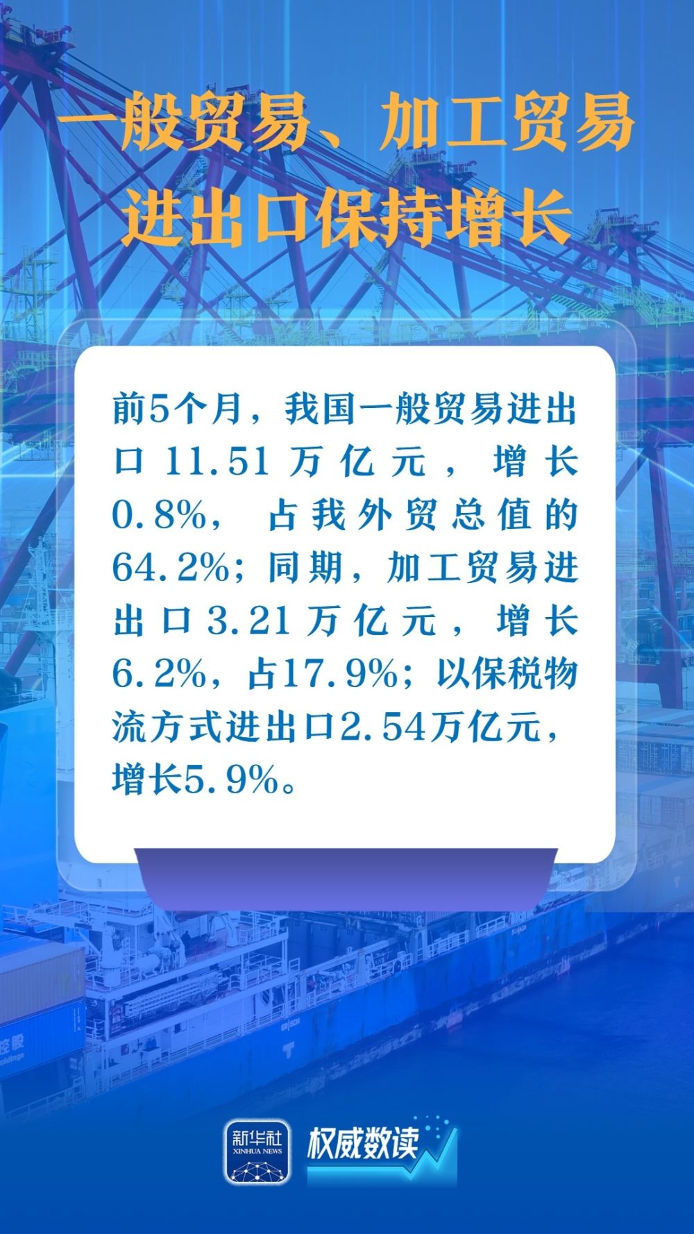 海關(guān)總署9日發(fā)布數(shù)據(jù),今年前5個(gè)月,我國貨物貿(mào)易進(jìn)出口總值17.94萬億元人民幣,同比增長(zhǎng)2.5%。以下幾組數(shù)據(jù),展示出我國對(duì)外貿(mào)易在外部壓力下依然保持較強(qiáng)韌性。
