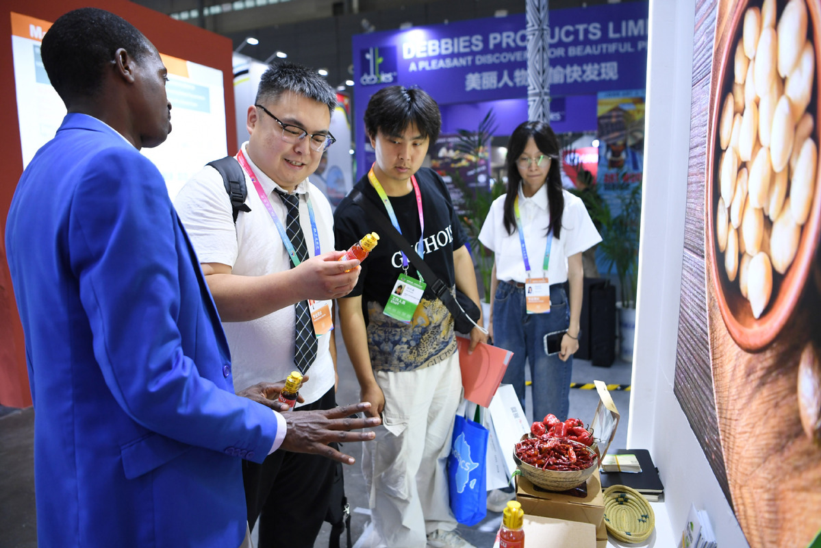6月12日,在長沙國際會展中心,參展商推介盧旺達辣椒產(chǎn)品。當(dāng)日,第四屆中國-非洲經(jīng)貿(mào)博覽會在長沙舉行。(圖片來源:新華社)