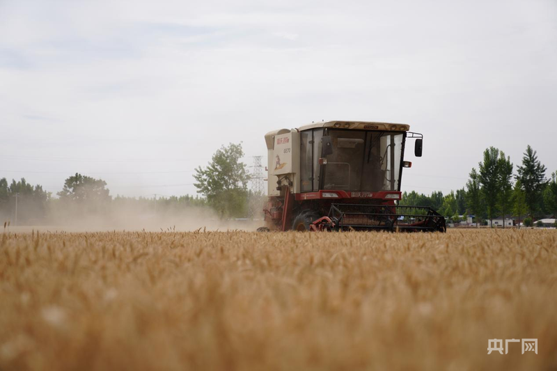 農(nóng)機(jī)手在操作收割機(jī)收獲小麥(央廣網(wǎng)發(fā) 韓田田 攝)