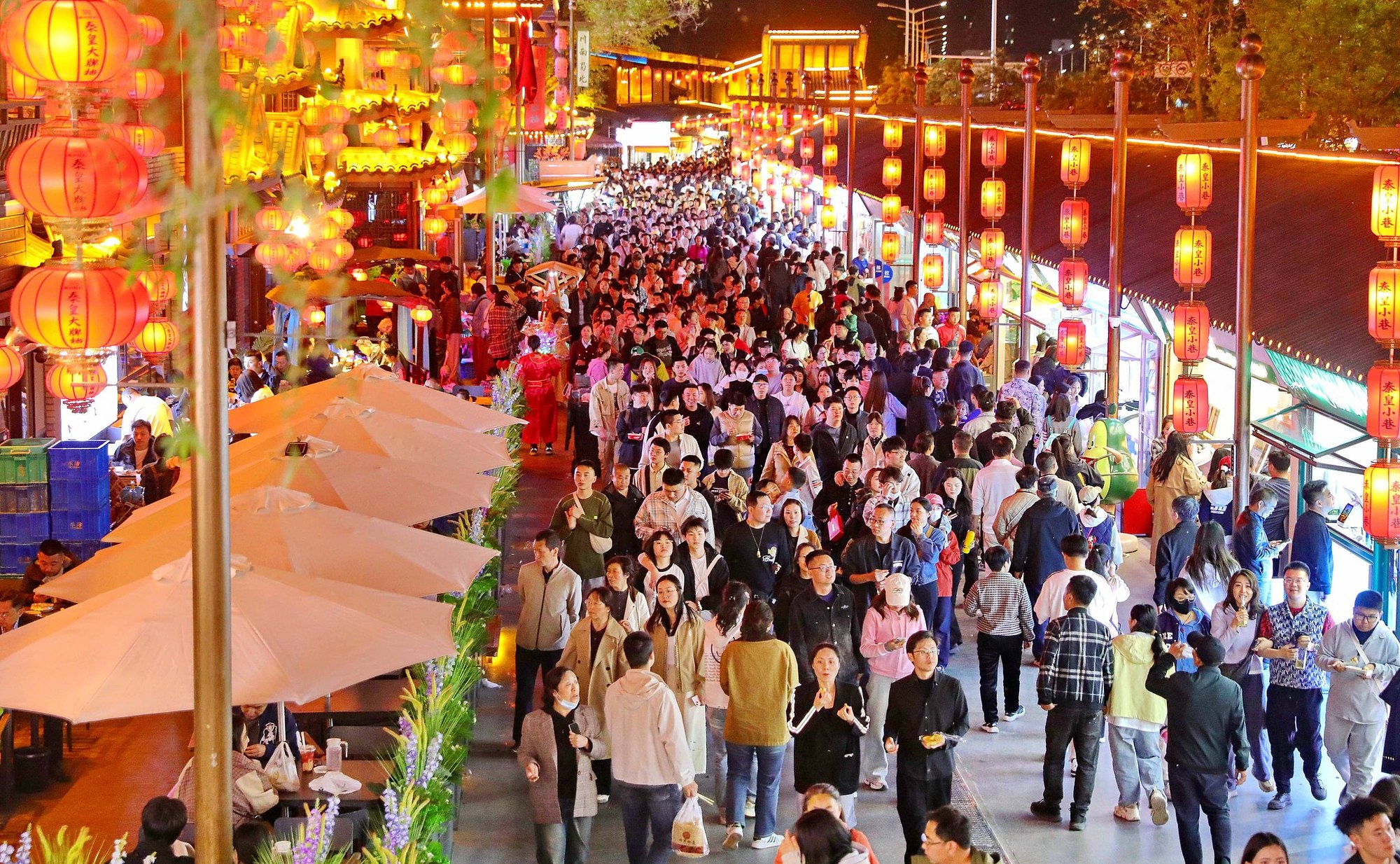 河北秦皇島,“五一”假期,游客在海港區(qū)秦皇小巷游玩。