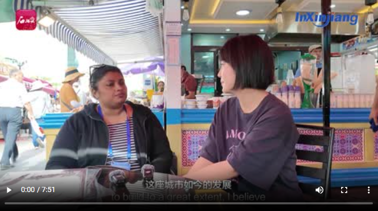 其間,斯里蘭卡《每日金融時報》副主編查魯米妮·德·席爾瓦和《InXinjiang》欄目記者一同開啟了體驗新疆文化的一天。查魯米妮·德·席爾瓦表示,新疆處處生機勃勃,充滿了文化氣息。在來新疆之前,她的同事告訴她“新疆很漂亮,你一定會愛上新疆”。來到新疆之后,查魯米妮·德·席爾瓦表示,新疆的確讓她大開眼界,期待下次帶家人再來新疆。