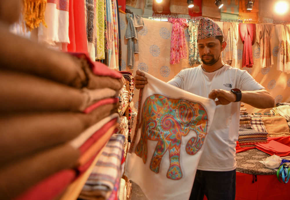 2025年6月18日,在第9屆中國—南亞博覽會(huì),來自尼泊爾的參展商整理即將展出的商品。新華社發(fā)(彭奕凱 攝)
