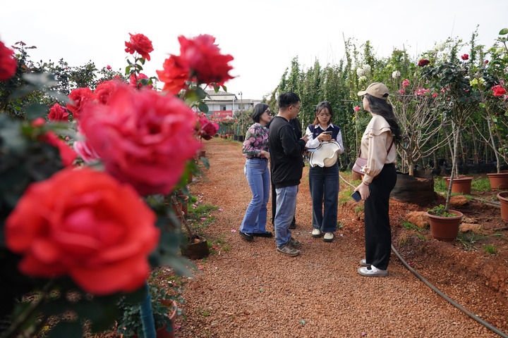2025年4月11日,花商在云南昆明斗南一個(gè)花卉基地內(nèi)討論采購價(jià)格。新華社記者 陳欣波 攝