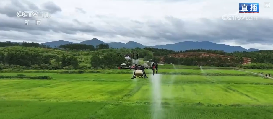 除了優(yōu)秀的品種,當(dāng)?shù)匾苍诔掷m(xù)推進(jìn)科技賦能田間管理。植保無(wú)人機(jī)在稻田上空進(jìn)行精準(zhǔn)飛防作業(yè),效率高、覆蓋勻、不傷苗都是它們的優(yōu)勢(shì)。而現(xiàn)在農(nóng)戶只需要通過(guò)手機(jī),就能預(yù)約“飛手”服務(wù),大大提高了效率。
