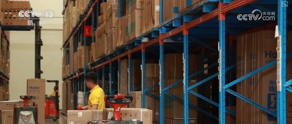 山東濟南最大的一個家電物流中心倉,負(fù)責(zé)當(dāng)?shù)?7個縣域的家電物流配送工作。當(dāng)記者來到這里時,正趕上這里的作業(yè)高峰,十幾輛物流車排成一列,等待裝貨發(fā)車。