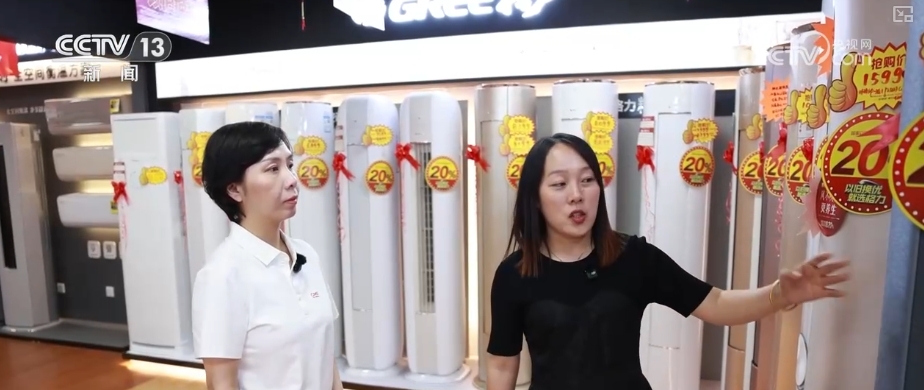 店主介紹,當(dāng)前消費者“以舊換新”需求旺盛。6月份以來,店內(nèi)銷售量環(huán)比增長了33%,空調(diào)、冰箱等清涼家電成為消費主力。