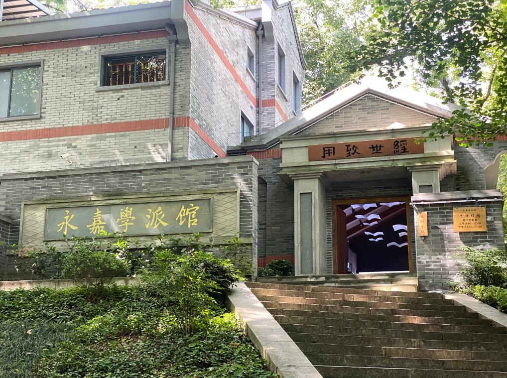在溫州鹿城區(qū)海壇山公園的茂密樹(shù)蔭間,坐落著一座青墻灰瓦的建筑——永嘉學(xué)派館。