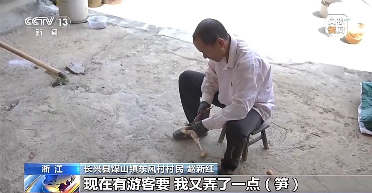 長(zhǎng)興縣煤山鎮(zhèn)東風(fēng)村村民 趙新紅:感覺(jué)很好賣,現(xiàn)在有游客要,我又弄了一點(diǎn)筍,把好一點(diǎn)的挑出來(lái),價(jià)格比批發(fā)上門收好多了。