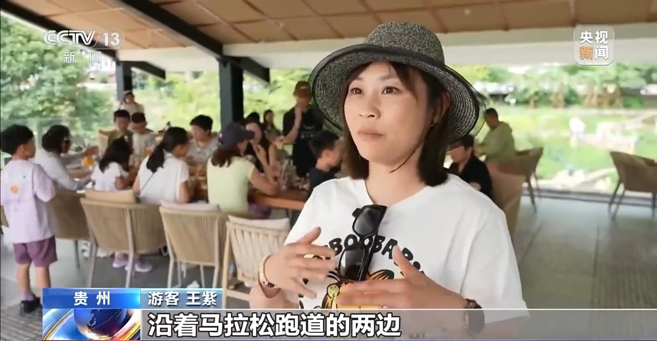 游客 王紫:沿著馬拉松跑道的兩邊,我們覺(jué)得整個(gè)旅游線修得非常精美,在如此美麗的自然風(fēng)光下去修建一條馬拉松跑道,很多喜歡旅游的人,他到了貴州可能也會(huì)因?yàn)檫@條馬拉松跑道而愿意留下來(lái)長(zhǎng)期生活。