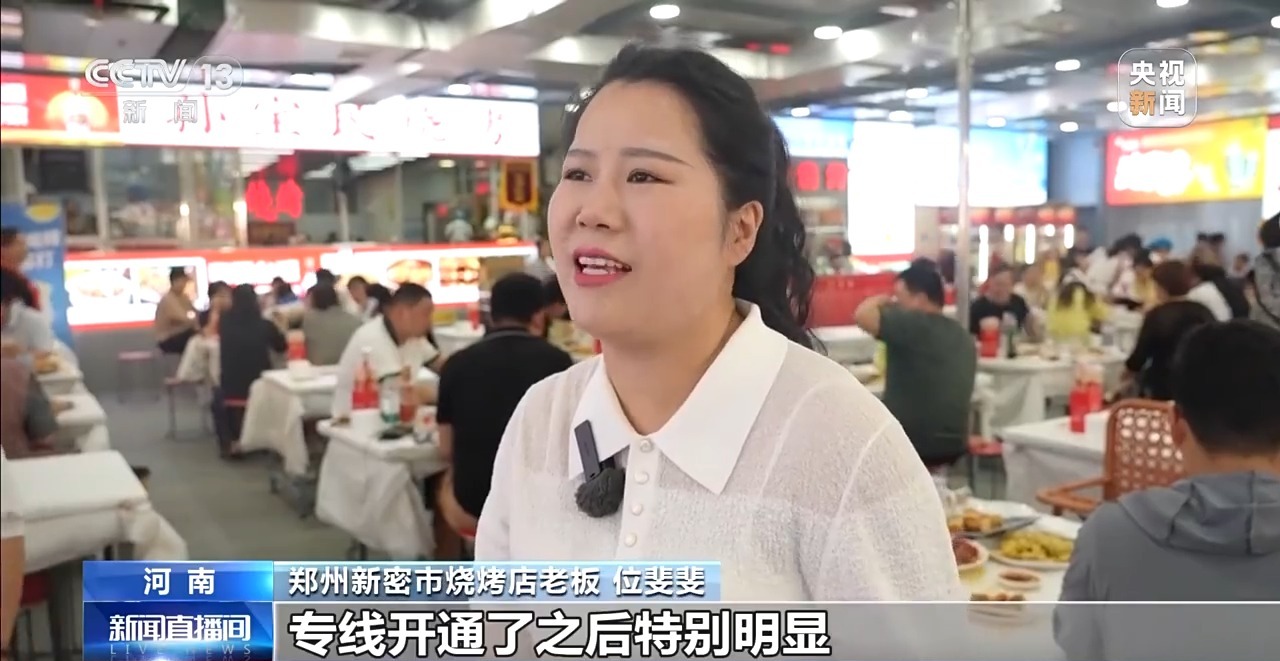 鄭州新密市燒烤店老板 位斐斐:專線開(kāi)通了之后特別明顯,這顧客一車接著一車。