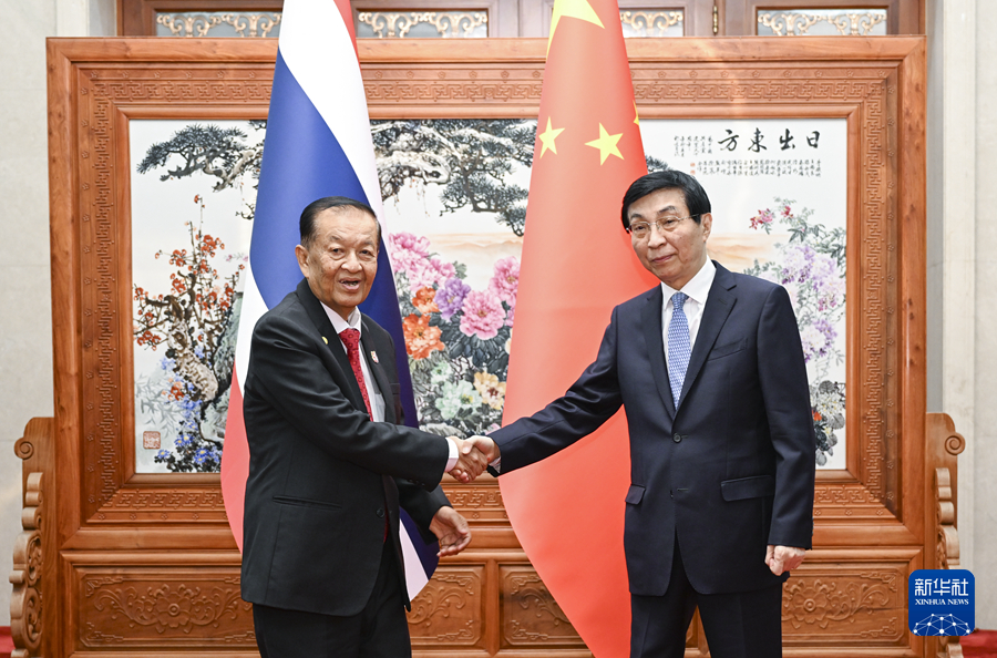 6月22日,全國政協(xié)主席王滬寧在北京會見泰國國會主席兼下議院議長萬諾。新華社記者 張領 攝