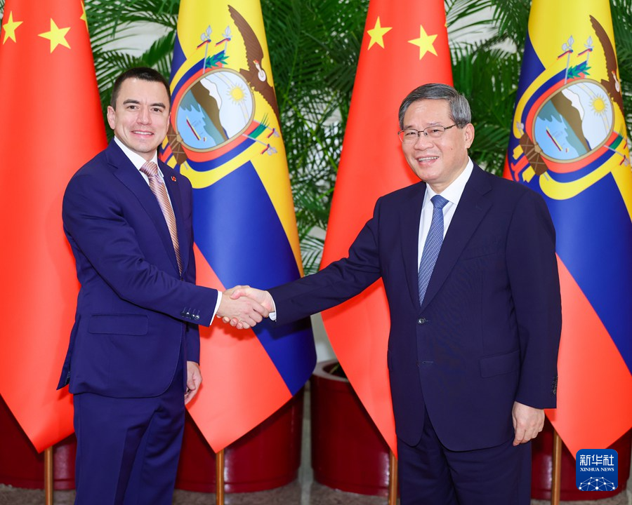 李強(qiáng)指出,中厄同為發(fā)展中國(guó)家,都把發(fā)展經(jīng)濟(jì)、改善民生作為重要任務(wù)。中方愿同厄方加強(qiáng)發(fā)展戰(zhàn)略對(duì)接,密切“一帶一路”合作,擴(kuò)大雙邊貿(mào)易規(guī)模,深化在清潔能源、基礎(chǔ)設(shè)施、金融等領(lǐng)域合作。中方樂(lè)見(jiàn)更多厄方優(yōu)質(zhì)產(chǎn)品輸華,歡迎厄方用好進(jìn)博會(huì)等推介平臺(tái)。雙方要繼續(xù)加強(qiáng)教育、文化、青年等領(lǐng)域交流合作,便利人員往來(lái),夯實(shí)兩國(guó)關(guān)系的民意基礎(chǔ)。中方愿同厄瓜多爾等拉美和加勒比國(guó)家一道,以共建中拉命運(yùn)共同體“五大工程”為契機(jī),在實(shí)現(xiàn)現(xiàn)代化的道路上攜手前行。中方也愿同厄方加強(qiáng)在聯(lián)合國(guó)等多邊機(jī)制的溝通協(xié)調(diào),踐行真正的多邊主義,為維護(hù)世界和平和發(fā)展、推動(dòng)構(gòu)建人類命運(yùn)共同體作出積極貢獻(xiàn)。