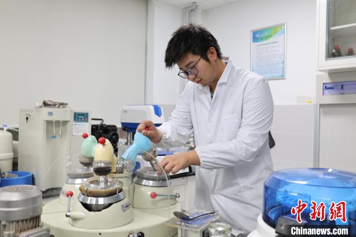 潘志威在學(xué)校陶瓷器考古實驗室使用研磨器。趙曉 攝