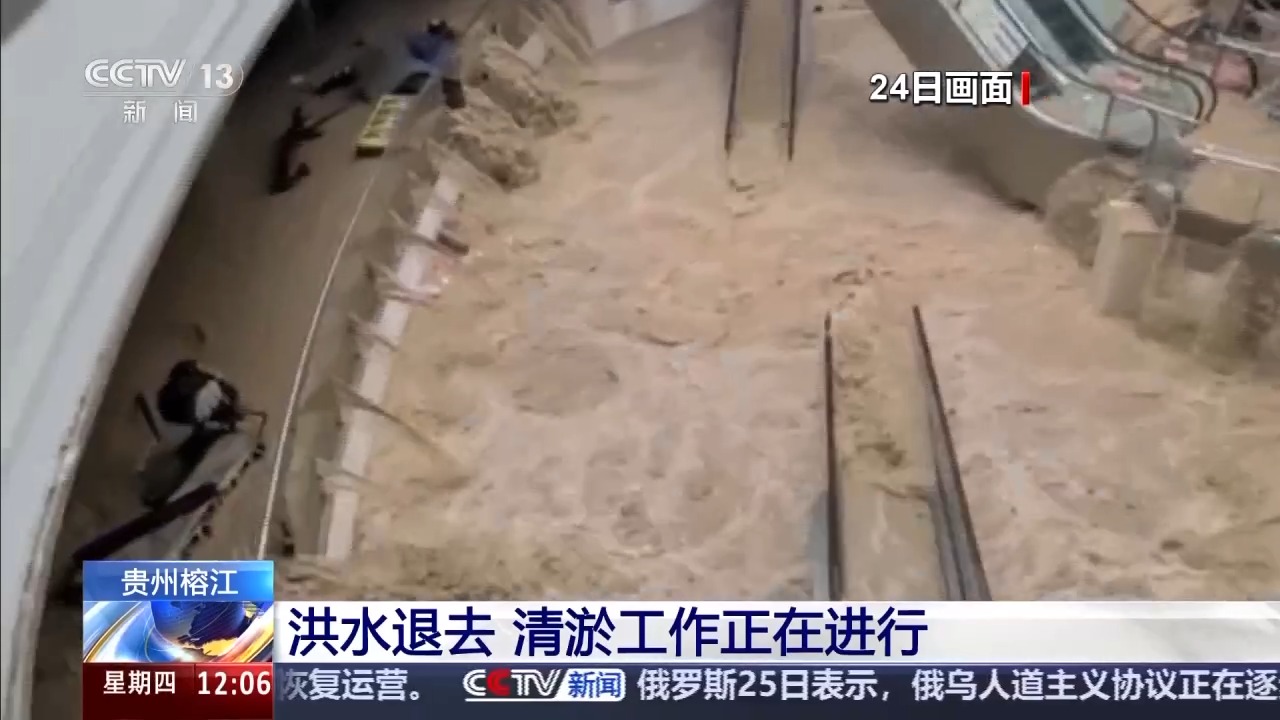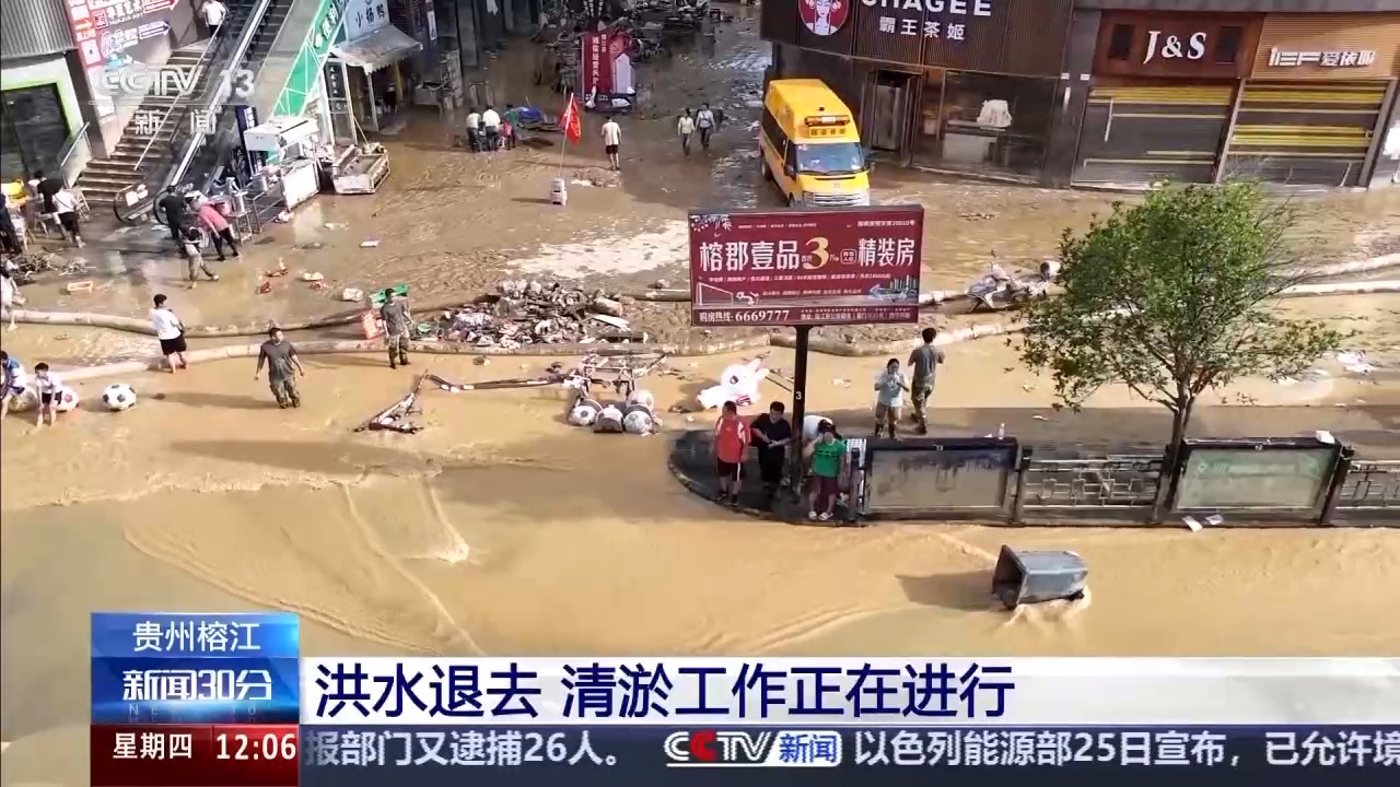 最近,貴州黔東南州遭遇持續(xù)強降雨,其中,榕江、從江兩縣24日先后經(jīng)歷洪峰過境,縣城多地被淹,受災嚴重。隨著降雨暫停,洪水水位明顯下降,清淤工作正在進行。