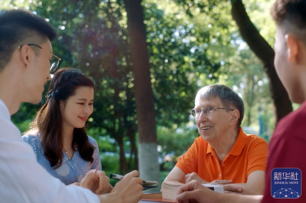 2019年,白麗詩(shī)與上海外國(guó)語大學(xué)的學(xué)生在一起。新華社發(fā)(上海外國(guó)語大學(xué)供圖)