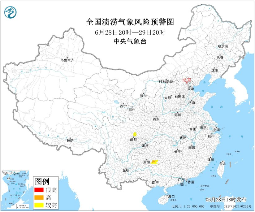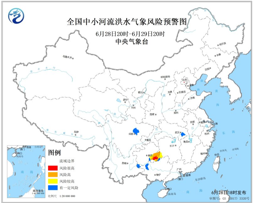 中央氣象臺6月28日18時(shí)發(fā)布中小河流洪水氣象風(fēng)險(xiǎn)預(yù)警: