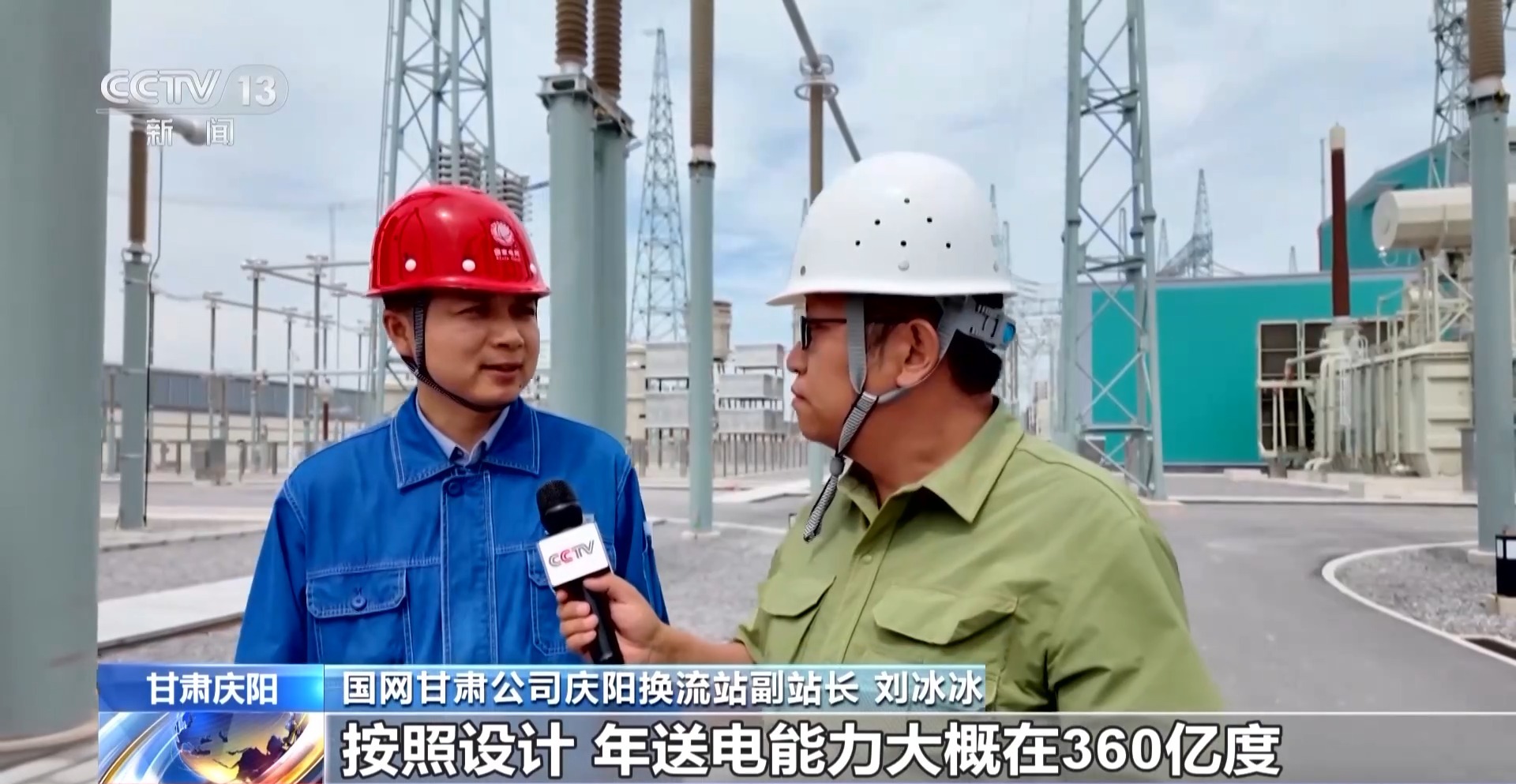 國網(wǎng)甘肅公司慶陽換流站副站長 劉冰冰:按照設(shè)計,年送電能力大概在360億度,可以滿足1000萬戶家庭一年的生活用電,清潔能源占比大概在50%以上。