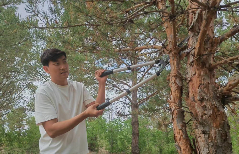 2017年,在爺爺?shù)膸ьI(lǐng)下,石健陽正式投身植綠事業(yè)?!斑^去沙害嚴(yán)重,老一輩治沙人最迫切的是要定住風(fēng)沙,讓地面先綠起來,所以當(dāng)時(shí)的樹種主要是生長快的楊樹?!笔£栒f,“幾十年過去,楊樹林老化嚴(yán)重,出現(xiàn)大面積枯死的情況。我們現(xiàn)在陸續(xù)對(duì)老化的林地進(jìn)行樹種更換,補(bǔ)種四季常青、生命周期更長的樟子松,目前已經(jīng)補(bǔ)種了5萬畝?!?/p>