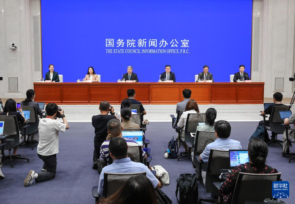 7月4日,國務院新聞辦公室在北京舉行國務院政策例行吹風會,商務部部長助理唐文弘,上海市委常委、常務副市長吳偉和商務部自貿(mào)區(qū)港建設協(xié)調司司長孟華婷,中國人民銀行研究局負責人紀敏,海關總署自貿(mào)區(qū)和特殊區(qū)域發(fā)展司負責人杜朝新介紹中國(上海)自由貿(mào)易試驗區(qū)全面對接國際高標準經(jīng)貿(mào)規(guī)則試點成效及復制推廣有關情況,并答記者問。新華社發(fā)(劉健 攝)