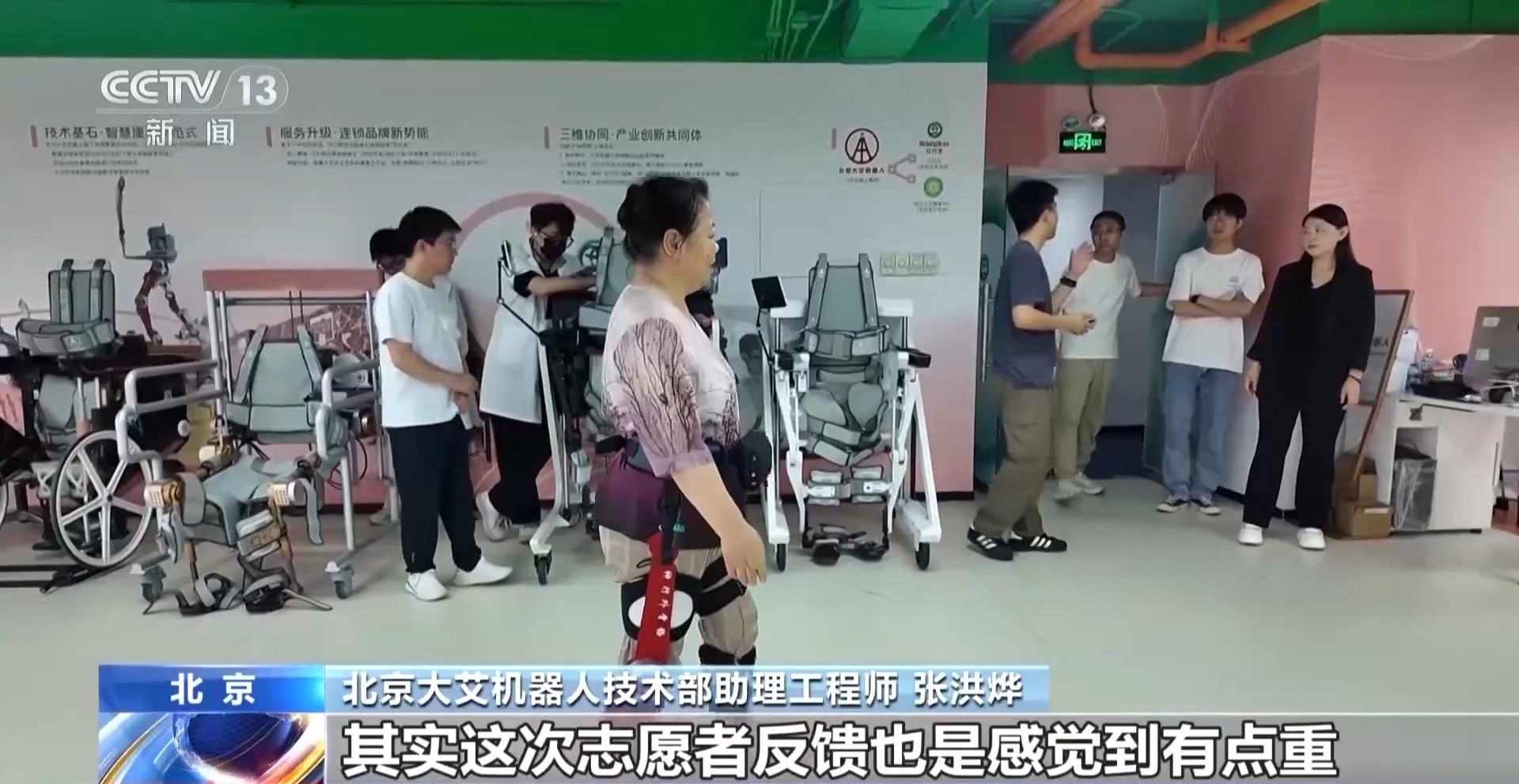 北京大艾機器人技術(shù)部助理工程師 張洪燁:在穿戴方面,老人其實更希望是讓它更簡單、更易上手,能自己獨立完成穿戴。在配重方面,其實這次志愿者反饋也是感覺到有點重,我們后續(xù)應(yīng)該是再減重。