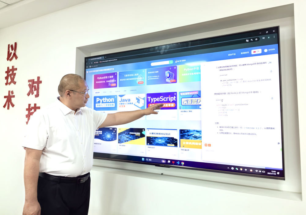 趙洪宇向記者介紹數(shù)字技能應(yīng)用的“虛擬課堂”。(石鑫 攝)