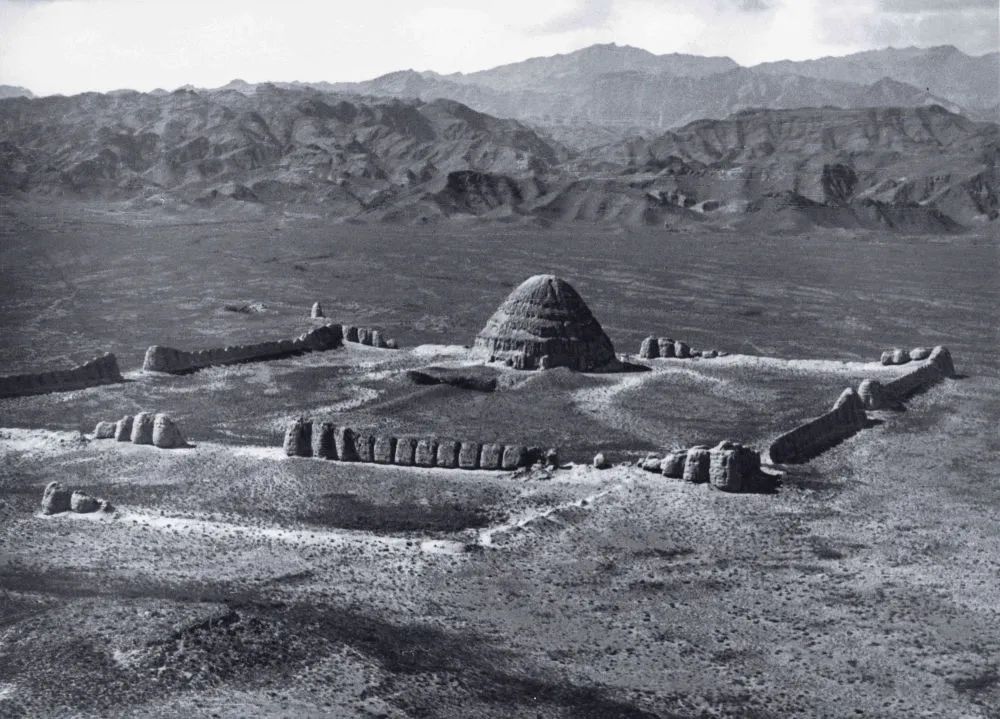 20世紀(jì)30年代,一位德國(guó)飛行員在寧夏銀川飛掠過(guò)賀蘭山。山前的幾個(gè)“土堆”兀然而現(xiàn),立刻引起了他的注意,他不由得用相機(jī)記錄下眼前奇景。