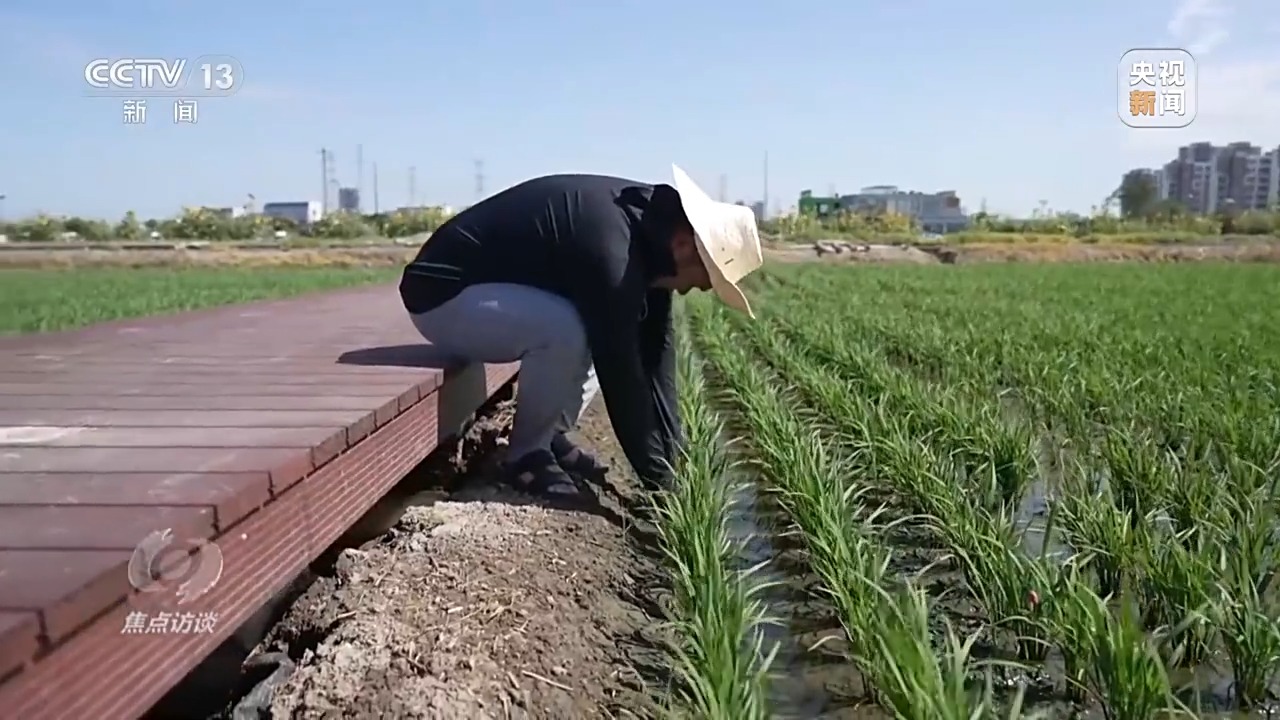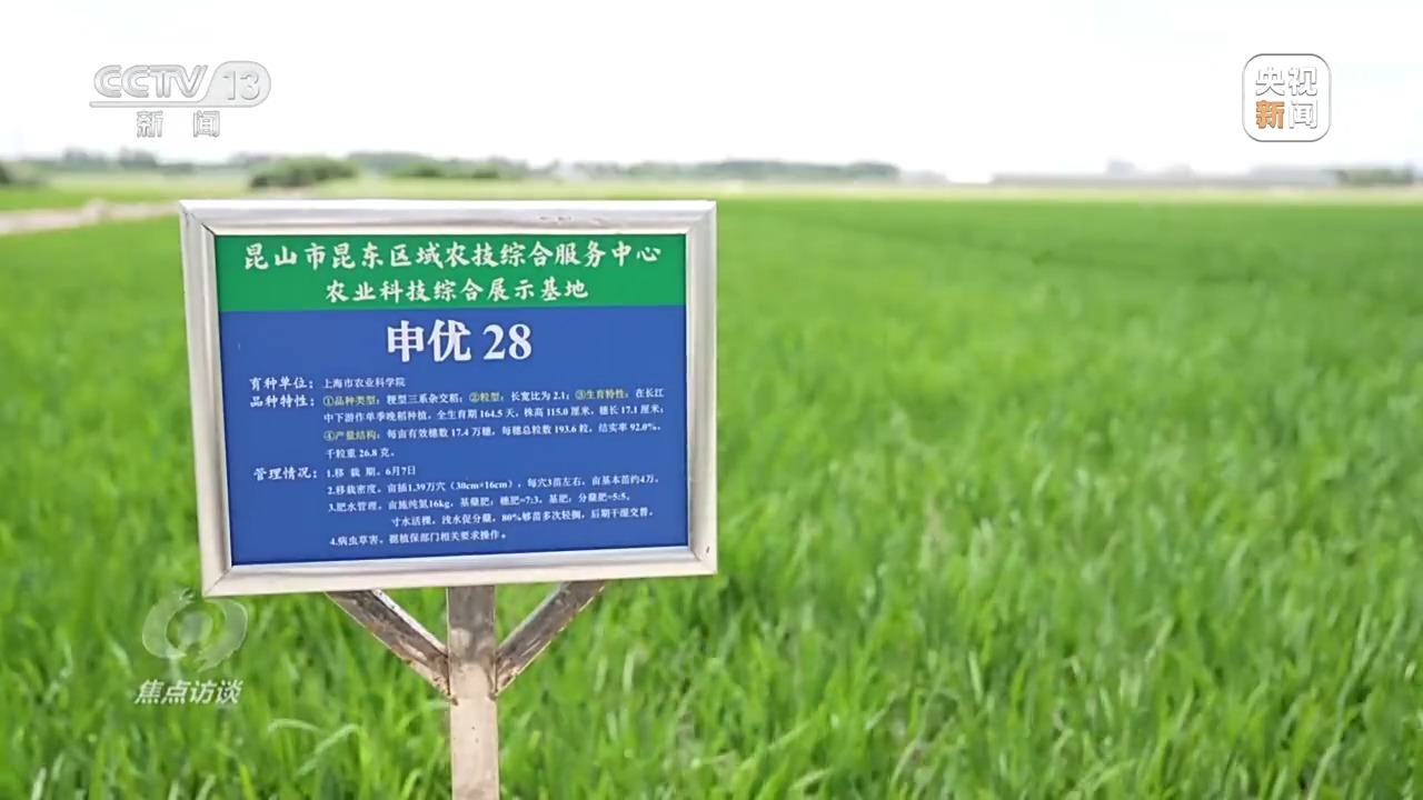 除了湖南,全國(guó)各地都在進(jìn)行良種的推廣選育,記者在江蘇昆山也看到新品種的推廣。7月7日這天,江蘇昆山的氣溫達(dá)到35℃。今年高溫來(lái)得早,這幾天室外溫度基本上都在35℃以上。昆山高新區(qū)白魚(yú)潭村的一片稻田里,種植大戶丁少坤冒著酷暑蹲在田埂上。