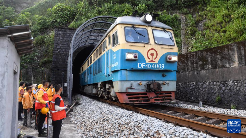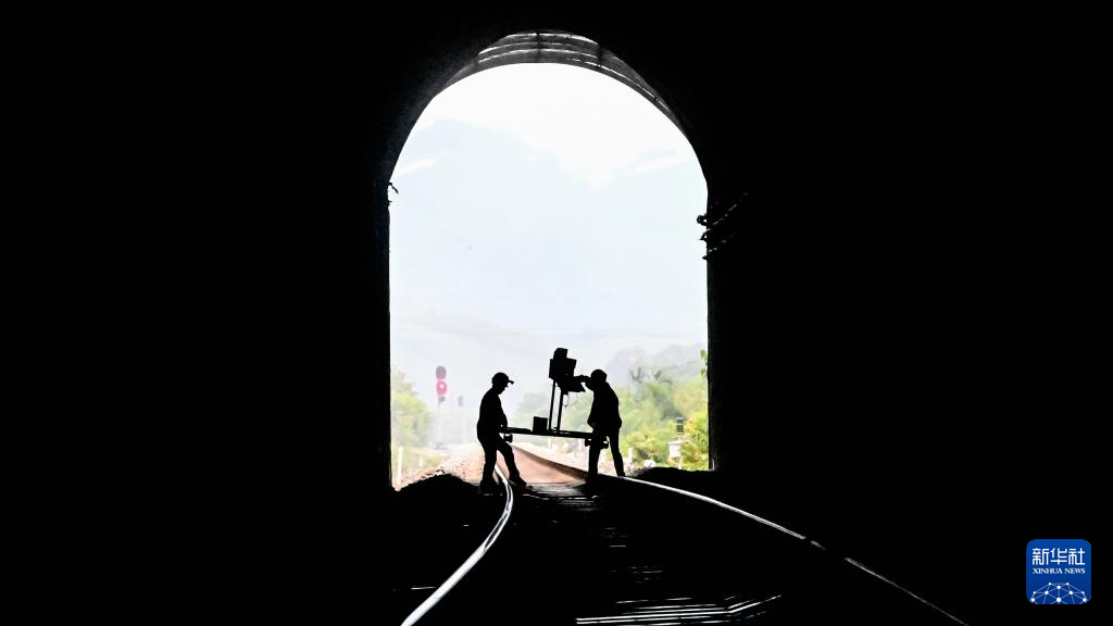 橋隧工人檢查隧道內(nèi)鐵軌(7月16日攝)。