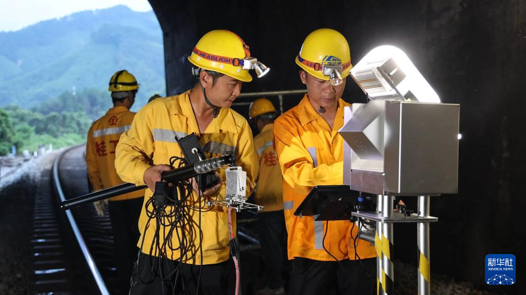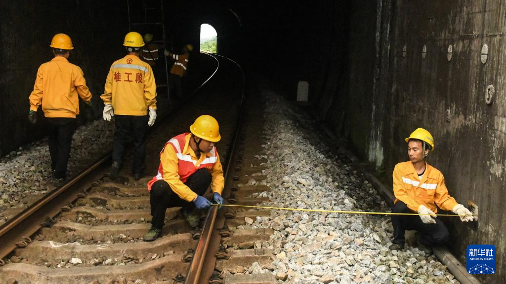 暑運期間,在湘桂鐵路(廣西段)沿線,國鐵南寧局桂林工務段13名橋隧工人日夜穿梭于桂北的崇山峻嶺間,對管段內(nèi)的10座隧道、1075座涵洞進行多維度巡檢、排查隱患,確保湘桂鐵路線上暑運客貨列車的安全運行。