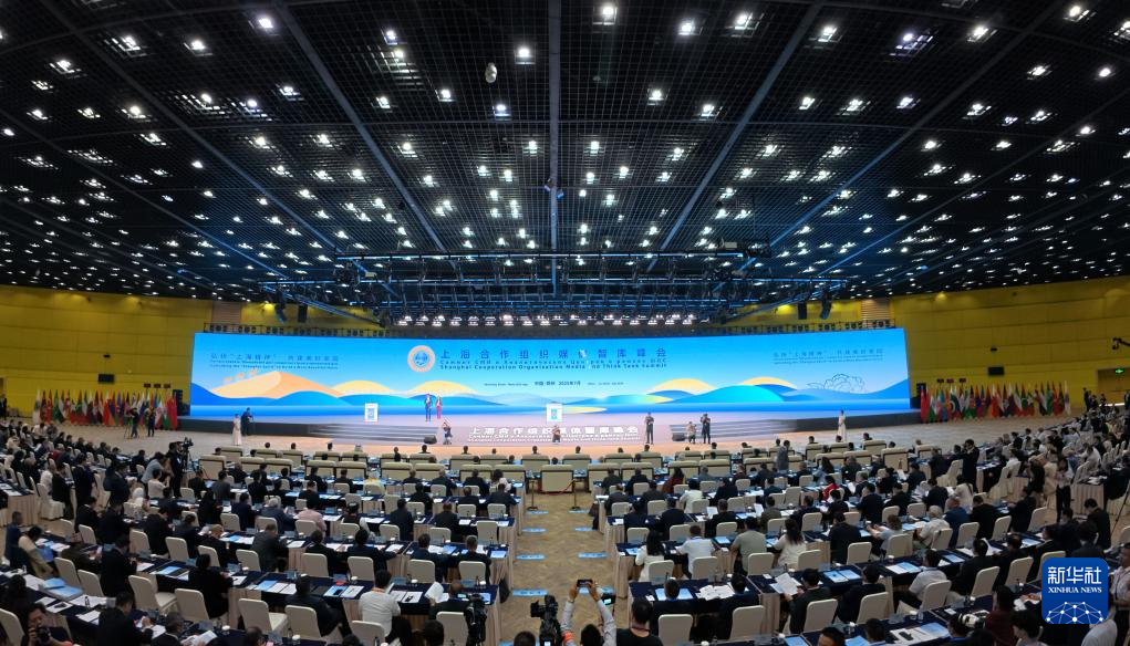 這是7月25日拍攝的上海合作組織媒體智庫峰會全體會議現(xiàn)場。新華社記者 高潔 攝