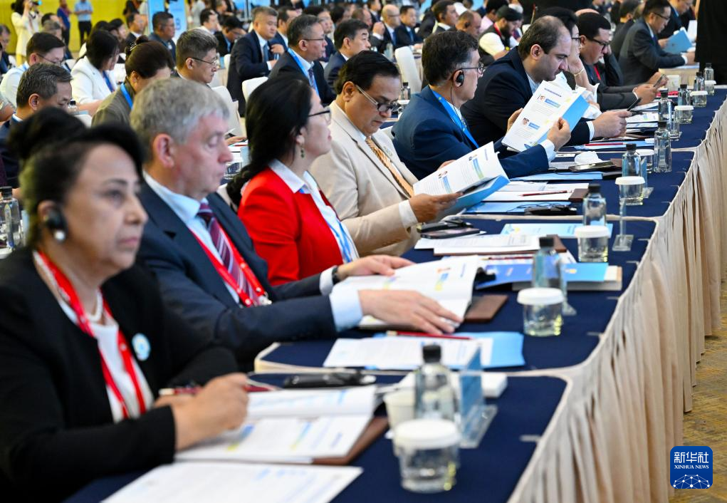 這是7月25日拍攝的上海合作組織媒體智庫峰會全體會議現(xiàn)場。新華社記者 郝源 攝