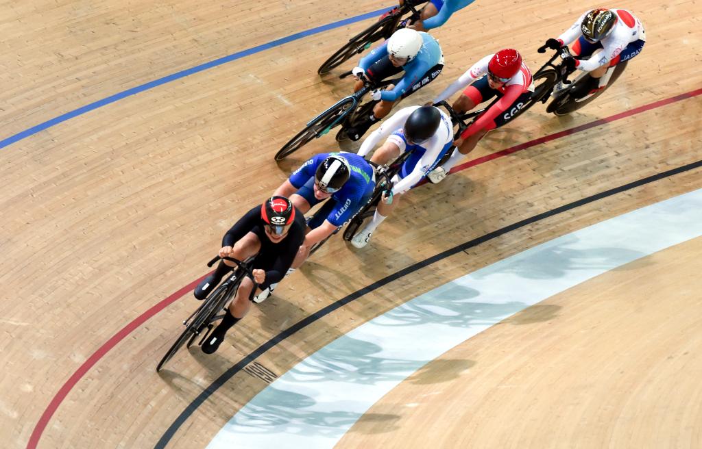 4月19日,2025香港國際場地杯暨第十五屆全運會場地自行車測試賽在香港將軍澳自行車館開賽。新華社發(fā)(盧炳輝攝)