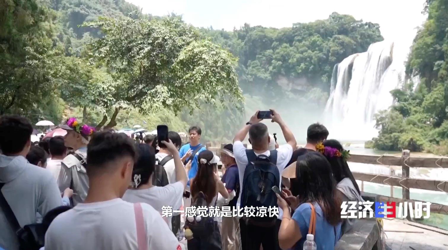 距離東北的白山黑水2000多公里,在北緯26度的貴州,夏季豐水期的黃果樹(shù)瀑布以磅礴的姿態(tài),打開(kāi)了迎客模式。