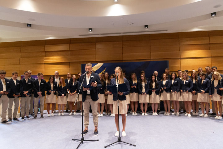 2025年7月17日,運(yùn)動(dòng)員在匈牙利代表團(tuán)誓師大會上宣誓。