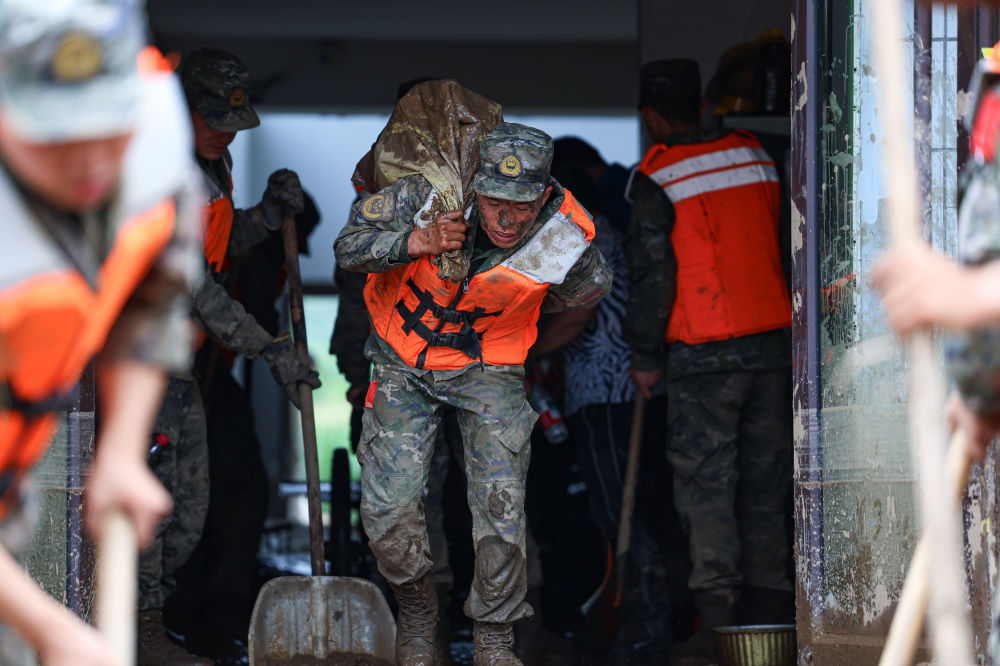 在轉(zhuǎn)移安置的同時(shí),受災(zāi)鄉(xiāng)鎮(zhèn)其他群眾和前來援助的干部、救援人員一道,晝夜不停,抓緊恢復(fù)生產(chǎn)生活。