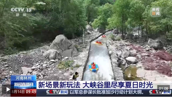 在河南林州太行大峽谷,旅游業(yè)態(tài)持續(xù)“上新”,這是升級(jí)后的峽谷漂流,沿途中增加了“水炮”“喊麥”等環(huán)節(jié),增強(qiáng)了游客的互動(dòng)感。