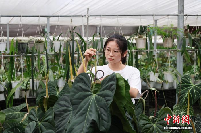 這位曾懷揣1萬(wàn)元啟動(dòng)資金的大學(xué)生,在園區(qū)婦聯(lián)創(chuàng)業(yè)扶持下,將天南星科植物育種做成千萬(wàn)產(chǎn)業(yè)?!鞍滋煜绿锱嘤淦?,夜晚直播分享知識(shí)”,她的村播新業(yè)態(tài)帶動(dòng)20多位農(nóng)村婦女就業(yè),讓科技賦能的雨林植物遠(yuǎn)銷海外。