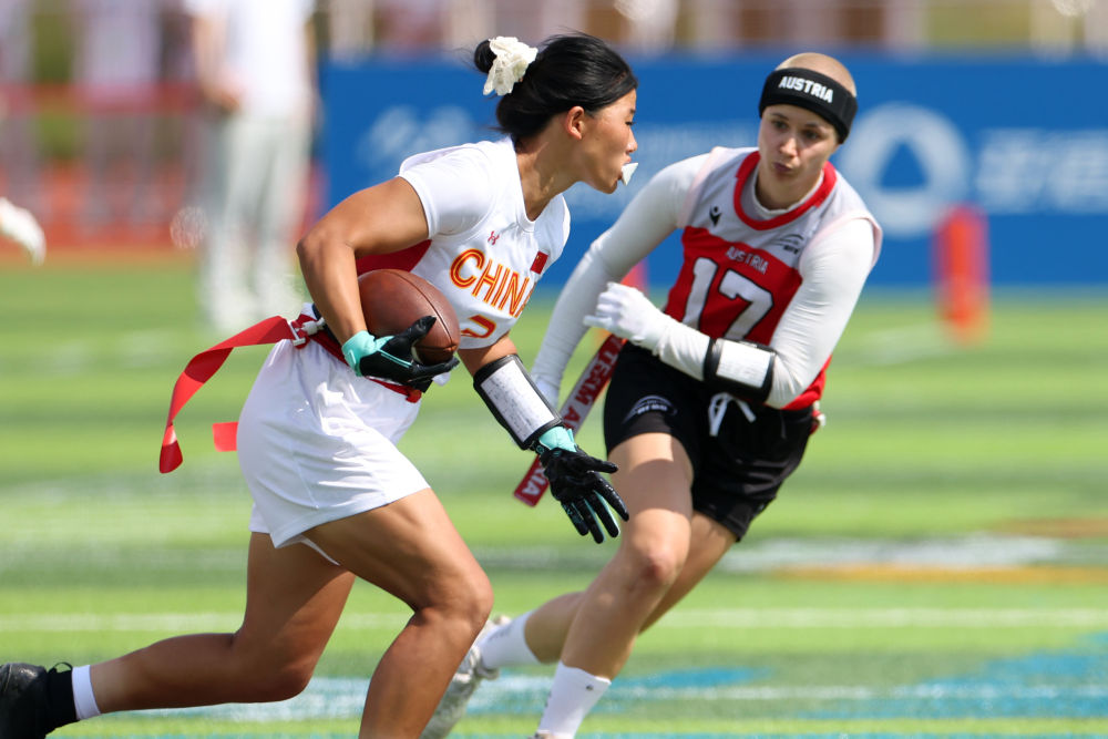 成都世運(yùn)會女子腰旗橄欖球比賽首日,中國隊上演正式比賽首秀。這支組隊集訓(xùn)僅3個多月的“神秘之師”,在首場迎戰(zhàn)世界排名第四的奧地利隊的比賽中,只以2分惜敗。