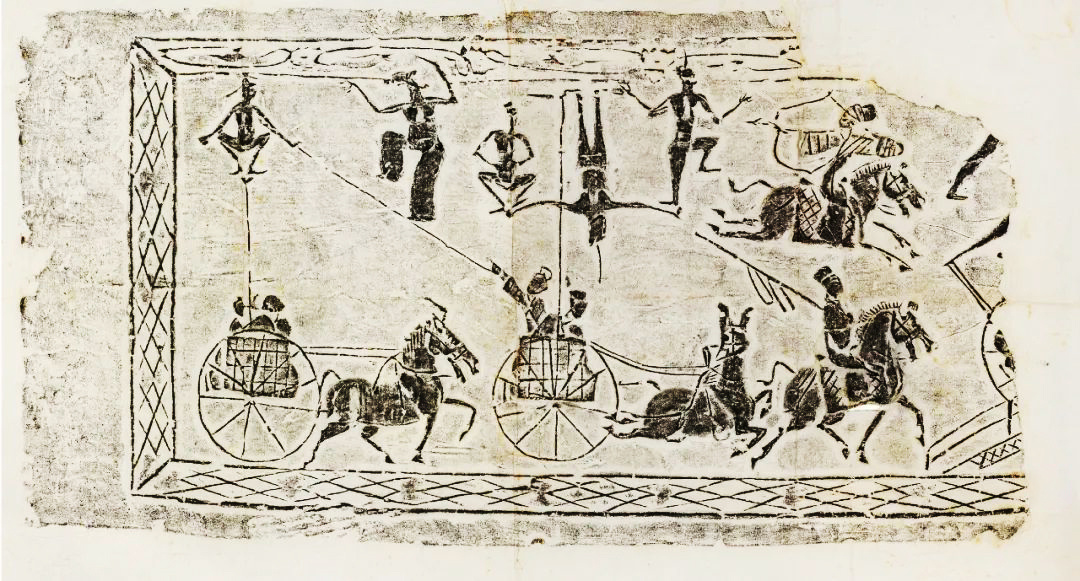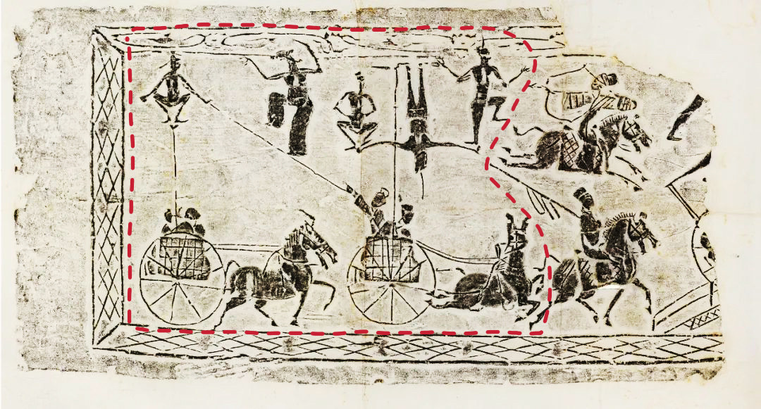 斜索戲車畫像磚以線面結合的手法分層敘事