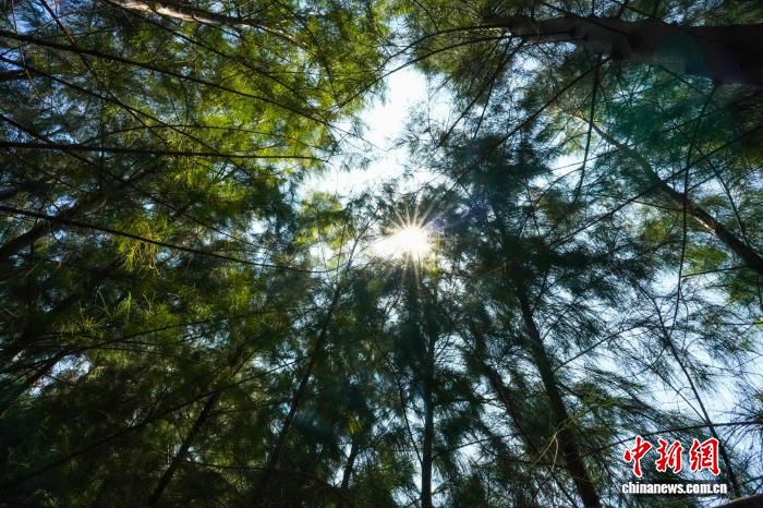 在某島礁,官兵培育的植物種類已達(dá)120余種,植被覆蓋率超過90%,成片的木麻黃林、抗風(fēng)桐林、大葉欖仁樹林鱗次櫛比地分布在各個角落,林下土壤表層出現(xiàn)了落葉和枯草形成的腐殖質(zhì),喬、灌、草銜接互補的森林植物群落生長格局正在加速形成。