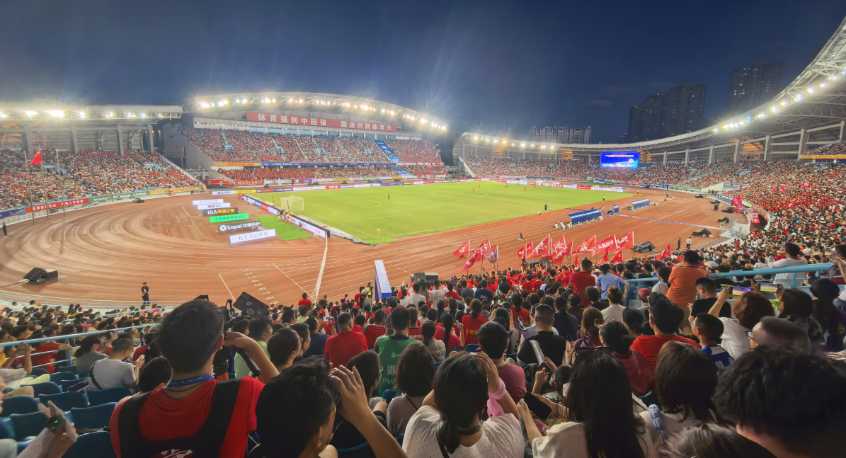 8月17日的南京奧體中心,堪稱“人從眾”的現(xiàn)場教學(xué)。本場比賽的現(xiàn)場球迷達(dá)到60633人,刷新了國內(nèi)業(yè)余足球賽事的現(xiàn)場觀眾人數(shù)紀(jì)錄,吶喊聲浪像是要“掀翻”屋頂。