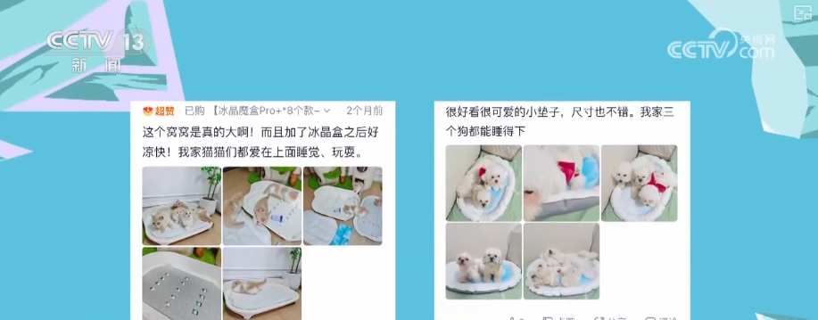 高溫還催熱了“它經(jīng)濟”。在網(wǎng)購平臺上搜索關(guān)鍵詞“寵物降溫”,寵物空調(diào)房、冰墊、冰絲圍巾、寵物專用空調(diào)等商品琳瑯滿目。一件30塊錢左右的基礎(chǔ)款寵物冰墊,月銷量輕松破萬??烧{(diào)節(jié)風速的寵物風扇、能自動制冷的寵物窩等,同樣備受追捧。評論區(qū)的畫風是這樣的“狗狗非常喜歡,玩得不亦樂乎”“貓咪睡覺終于踏實了”“家里的娃和毛孩子都很喜歡”。