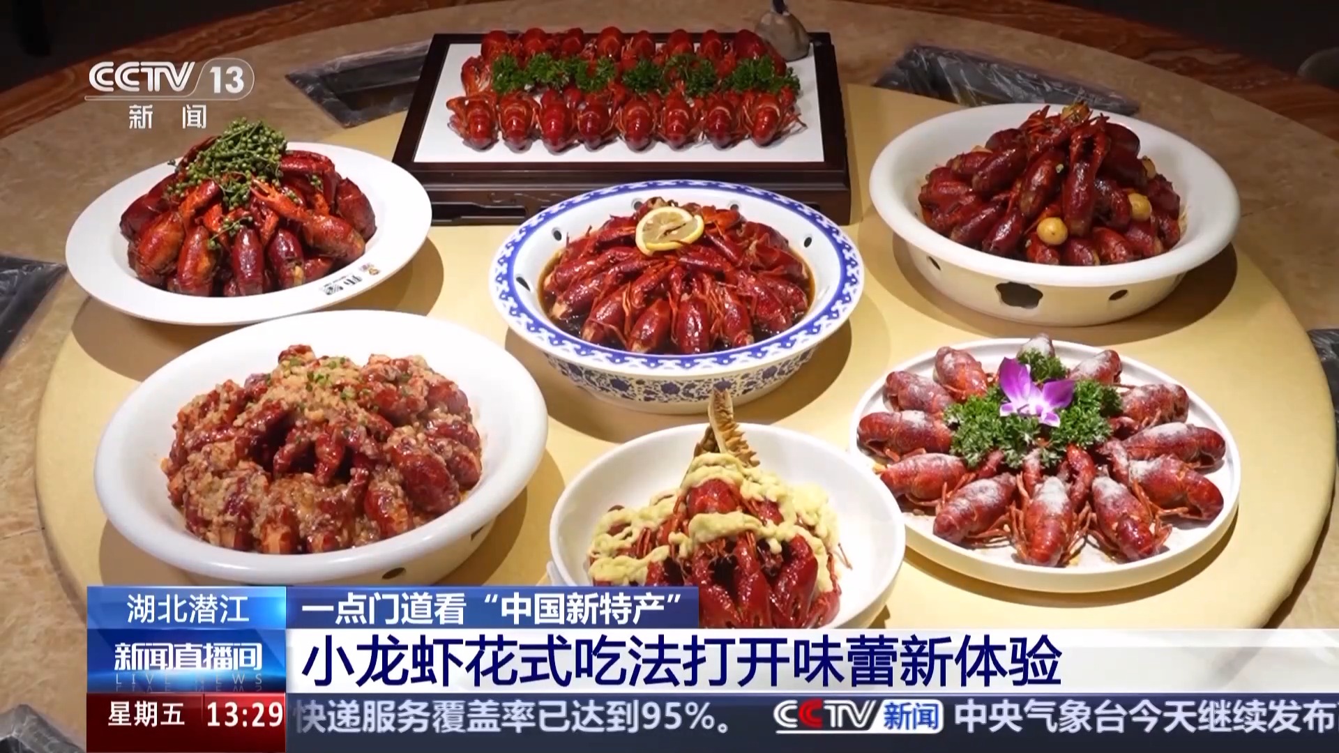 今天在演播室,我們也為大家?guī)砹藘傻罎摻↓埼r的新品,這道是“榴梿蝦”,大家可以看到,這是將軟爛的榴梿肉與龍蝦一起燒制,看著就非常入味,直播間里現(xiàn)在都飄著榴梿濃郁的味道。旁邊還有一款神秘口味的小龍蝦,看著平平無奇,但是據(jù)說非常獨(dú)特,可能會(huì)顛覆您對(duì)小龍蝦口味的印象,和咱們平時(shí)喝的某種飲品有關(guān),那究竟是什么味道呢?咱們先賣個(gè)關(guān)子,讓我們跟隨總臺(tái)記者的鏡頭,一起走進(jìn)潛江,看看那里的龍蝦盛宴。