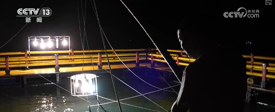 小管是東山海域特有的小魷魚,晝伏夜出對(duì)光線極為敏感,漁民們便循著這份習(xí)性,帶著游客開啟夜間捕撈。漁船行駛10分鐘后,抵達(dá)近海養(yǎng)殖區(qū)邊緣的捕撈點(diǎn),漁民們開始架設(shè)誘光燈和網(wǎng)具。