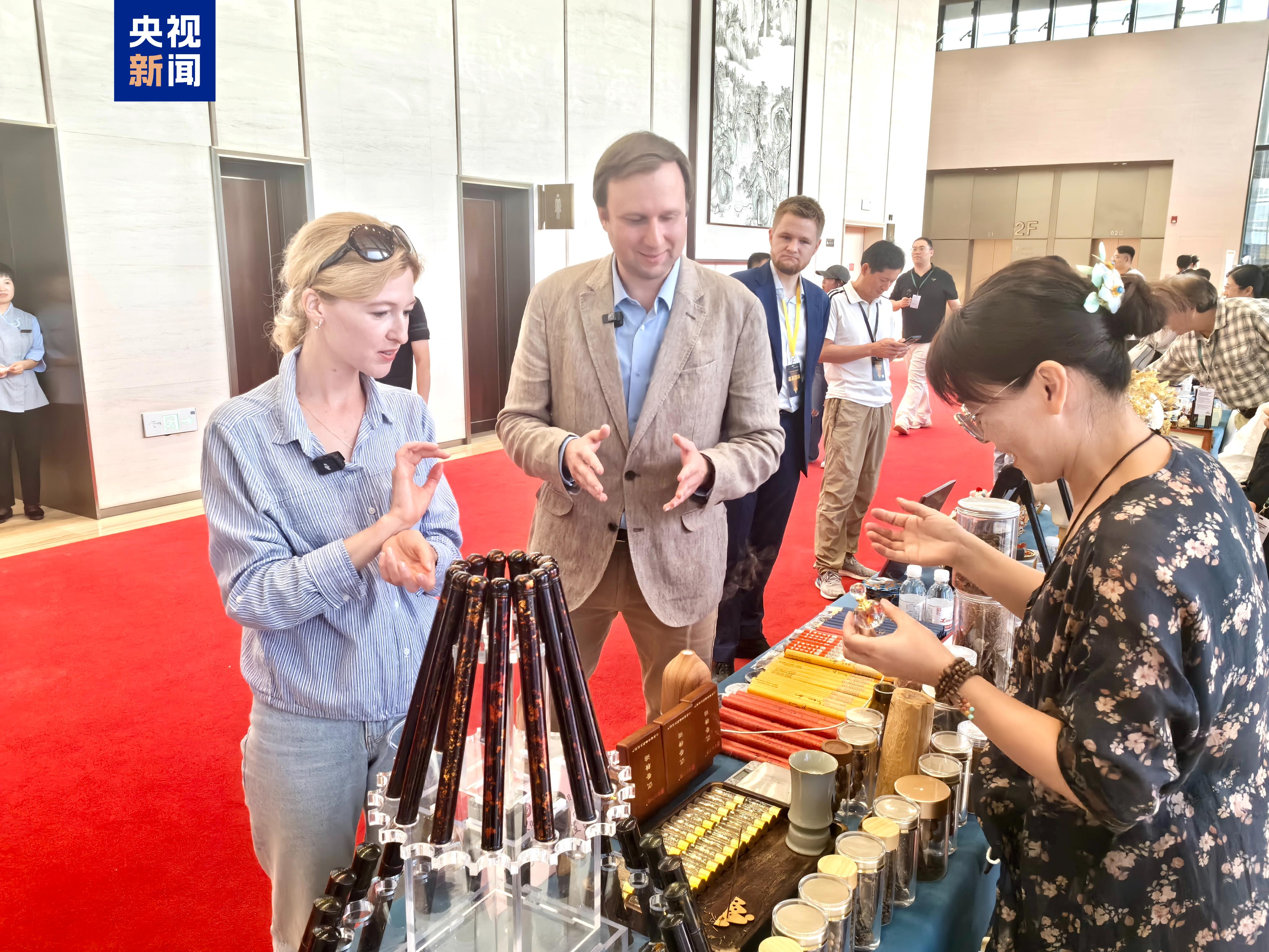 在青島國際會議中心非遺文化體驗與展示區(qū),CGTN俄語記者通過新媒體直播,帶領海外受眾沉浸式體驗嶗山茶藝、面塑技藝、孫氏沉香制作等中國非物質(zhì)文化遺產(chǎn)的獨特魅力,生動傳遞中華文化的深厚底蘊與當代活力。