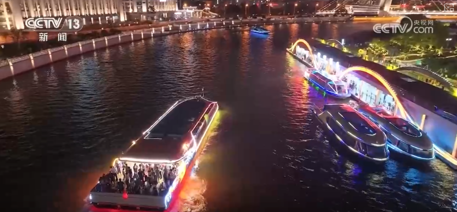 除了博物館內(nèi)的精品文物給大家?guī)?lái)了文化盛宴,入夜后的海河璀璨絢麗,海河之夜美景再升級(jí)。沿線建筑、橋梁及碼頭的燈光景觀全面提升,飽覽海河兩岸美景的海河游船也打造了全新體驗(yàn)。