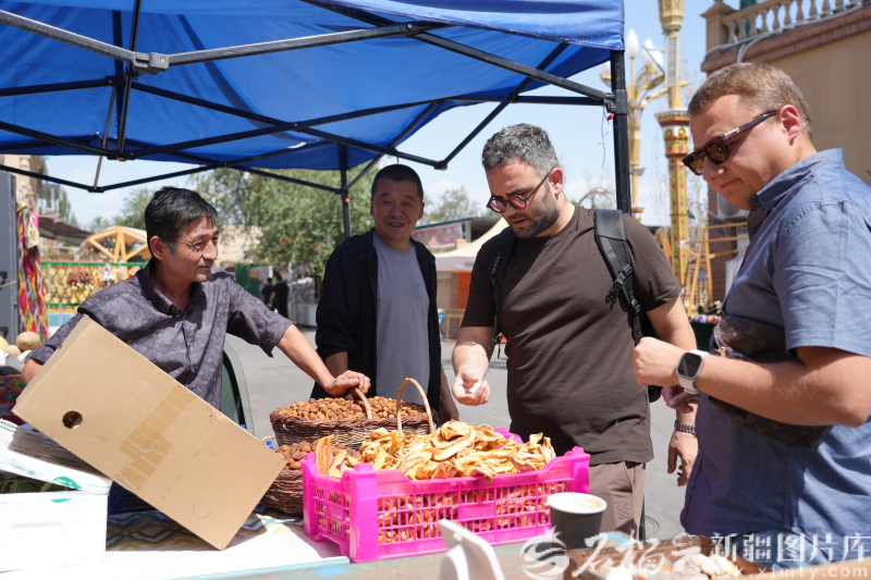 8月22日,研修班一行在哈密阿勒屯古街購(gòu)買哈密瓜干。仲銀堂攝