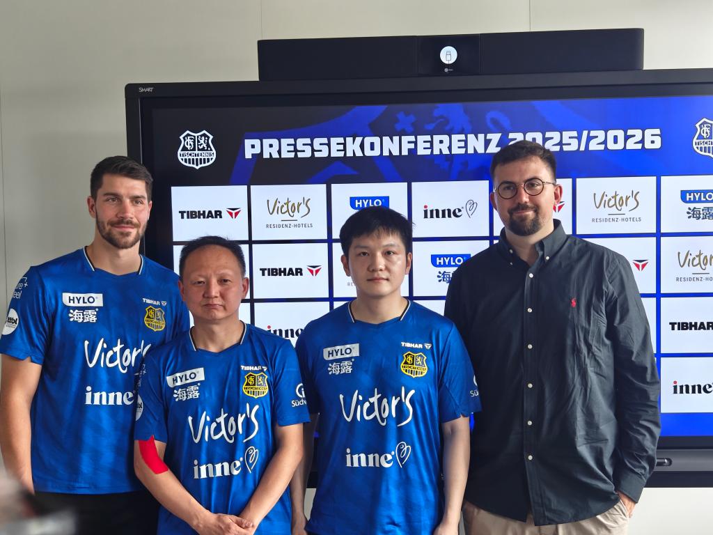 樊振東表示,非常開心加盟薩爾布呂肯,2016年曾在這里打過世界杯,留下了美好回憶。他表示自己能夠有機(jī)會(huì)來到德國(guó)打球,離不開很多人的支持跟幫助。