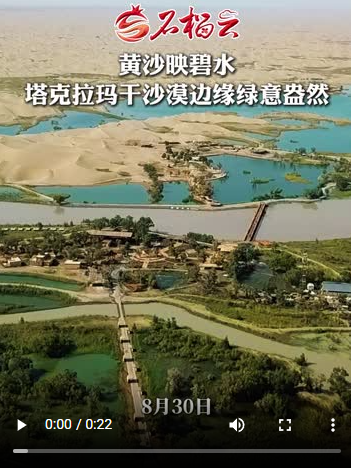 8月30日,位于塔克拉瑪干沙漠邊緣的新疆尉犁縣羅布人村寨,風(fēng)景秀美,綠意盎然。受近期汛期洪水的滋潤(rùn),塔里木河兩岸植被生長(zhǎng)旺盛,沿岸一派生機(jī)勃勃的景象。
