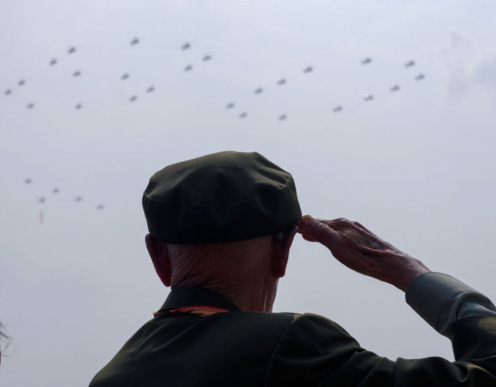 2025年9月3日,紀(jì)念中國人民抗日戰(zhàn)爭暨世界反法西斯戰(zhàn)爭勝利80周年大會在北京隆重舉行。這是抗戰(zhàn)老戰(zhàn)士在天安門城樓上敬禮。新華社記者 才揚 攝